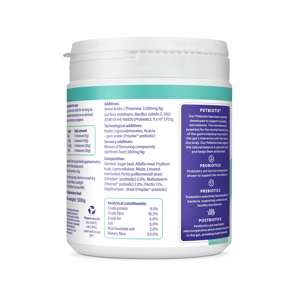 Complemento rico en fibras solubles e insolubles, ideal para perros y gatos con tránsito intestinal irregular o problemas de heces blandas. Apoya la salud digestiva diaria con prebióticos y probióticos.